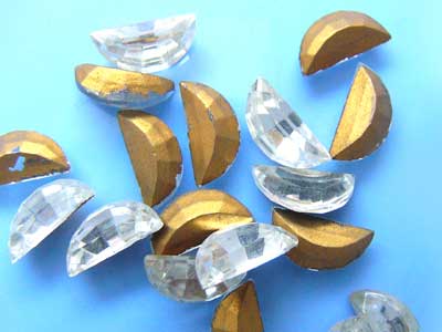 12×6 ハーフムーン クリアゴールドフォイルが僅かに剥げ気味。ポインテッドバック、チェコヴィンテージです。12mm×6mm