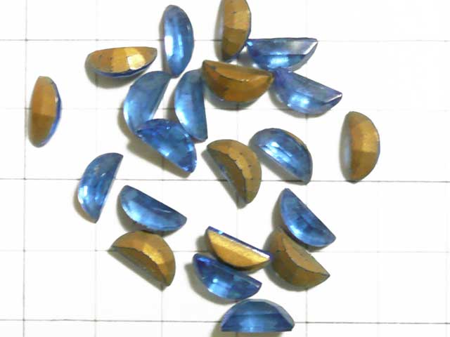 10×5 ハーフムーン 淡サファイア 2個セット少し淡めのサファイアブルーが美しい、チェコヴィンテージストーン。ライトサファイアよりは濃く、通常のサファイアよりは明るい色合いです。ストーンの厚みの違いによるものと思われます。ポインテッドバック、ゴールドフォイル。経年劣化によりフォイルや表面に擦り傷・剥げ等がみられますのでご了承下さい。画像のマス目は1cm四方です。大きさの目安にして下さい。10mm×5mm 厚さ 3.2mm