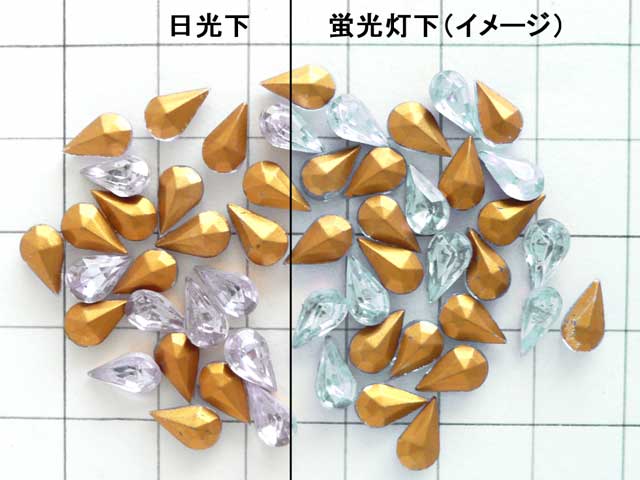 8×4.8 ティアドロップ アレキアレキカラーのヴィンテージストーン。日光下では淡いパープル、蛍光灯下では淡いブルーに変化します。裏面はゴールドフォイル。ヴィンテージ品のため、僅かにフォイルに擦り傷が見られる場合がございます。画像のマス目は1cm四方です。大きさの目安にして下さい。8mm×4.8mm 厚さ3mm