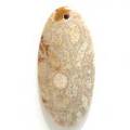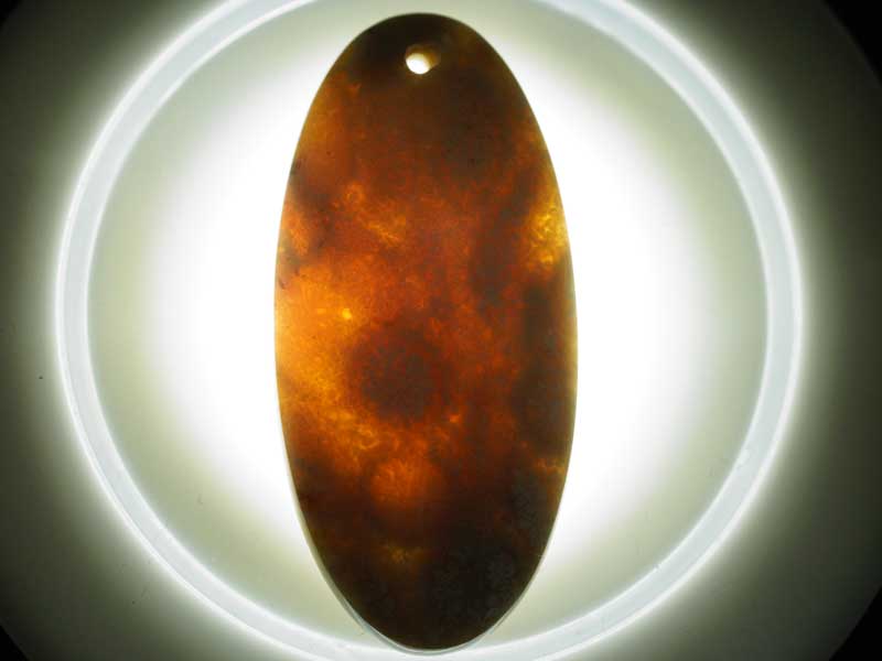 ペイズリー柄のような模様や花模様が混ざり、壁画のようなカボション。1ホール穴つき。下からライトを当てると、模様が透けます。(最下部画像参照)